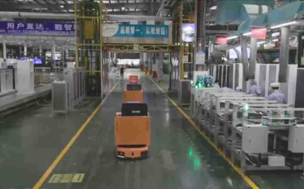 为车载冰箱物流配送打造的智能解决方案,,包含产中物流通过潜伏举升AMR搬运至线边,,产后成品物流智能仓储,,,流程包含产中物流智能齐套入库,,,,线边安灯叫料AMR智能配送至线边,,,成品入库、、、出库,,,通过无人堆高车机器人,,,智能仓储管理替代人工作业管理,,,,实现更高存储、、、、更高效率、、、、更具柔性化的解决方案。。。